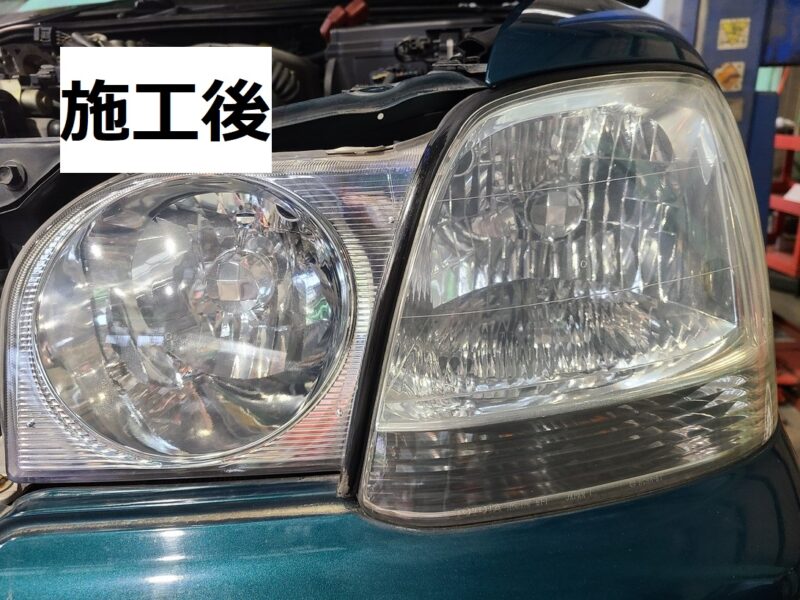 そこでお客様に「ヘッドライトコーティングなら両方で1万円かつ2年ほど黄ばみを抑えることができますよ」と提案し、オーナー様の了承を得て施工させて頂きました。