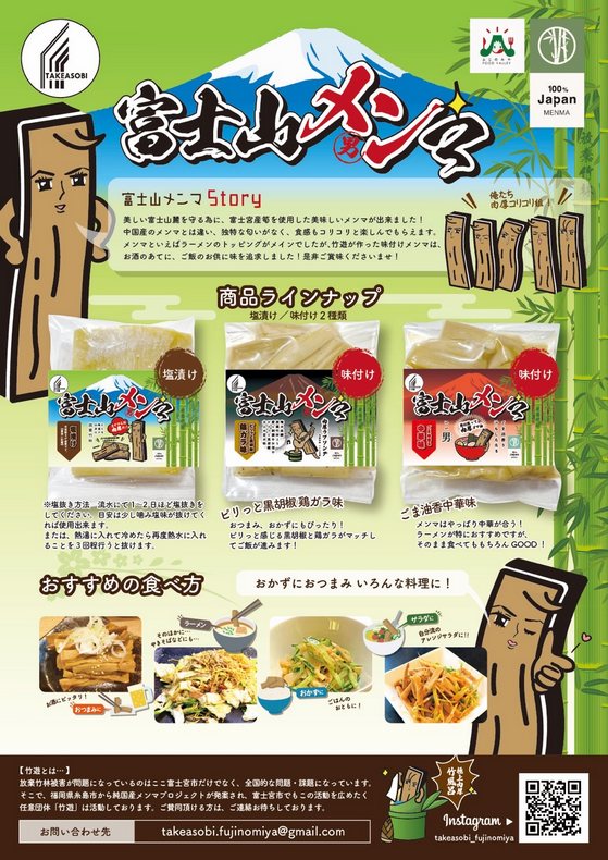 さて、今年の当店ブースでは、今回 初お披露目 竹遊_TakeAsobiさんプロデュースの「富士山メンマ」を一緒に販売させていただきました。代表の高橋さんの放置竹林をなんとかしたいという熱い思いにシンパシーを感じ、またこの「富士山メンマ」の味のクオリティの高さに惚れ込んでの合同出店でした。当日は多くの皆さんが足をとめ、メンマに関心をもってくださりお昼前にはたけのこ水煮共々ほぼ完売しました。